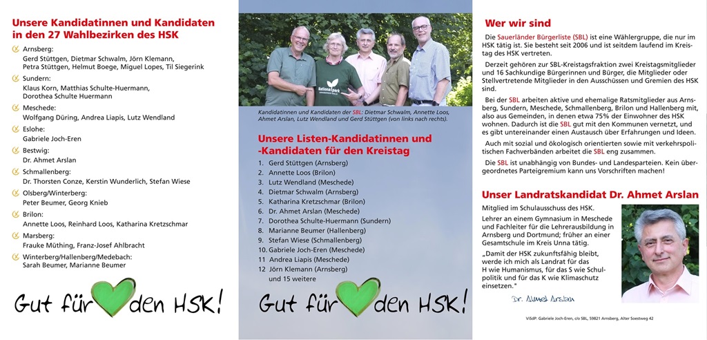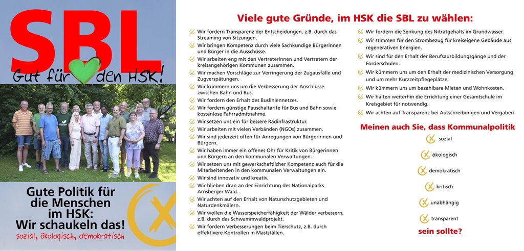 Unser Flyer zur Kreistagswahl: SBL HSK